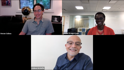 Steven Collens, Trinidad Grange-Kyner and Addison McGuffin in discussion during the live virtual event on August 27